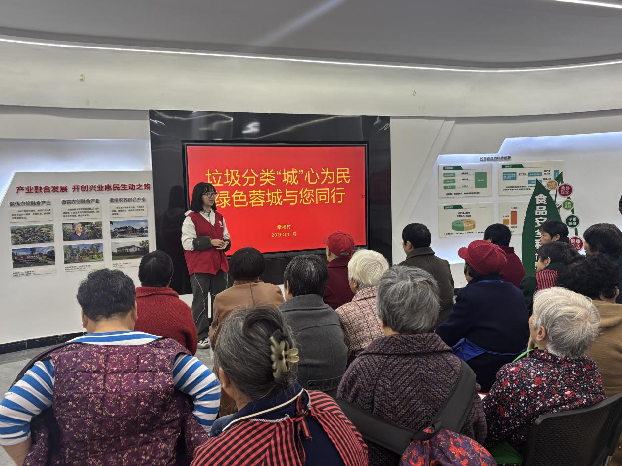 为进一步推进垃圾分类工作,提高群众环保意识。2025年11月,万春镇幸福村以“垃圾分类‘城’心为民,绿色蓉城与您同行”为主题,开展垃圾分类宣传活动。活动通过知识科普、现场示范、分组讨论形式开展,旨在营造社区环保氛围,共建美好人居环境。活动现场,志愿者老师通过通俗易懂的语言、生动有趣的案例,向村民详细讲解了垃圾分类的重要意义与具体方法,并重点强调了生活垃圾对人居环境和生态环境的影响。同时,志愿者组织村民围绕如何在“双十一”期间更好践行绿色低碳生活方式展开了分组讨论,并通过鼓励村民将快递包装绿色化、减量化、可循环,以更好践行“绿色包装 垃圾减量”环保理念。